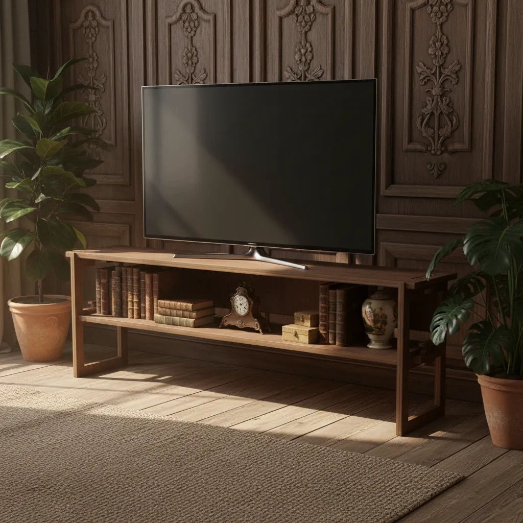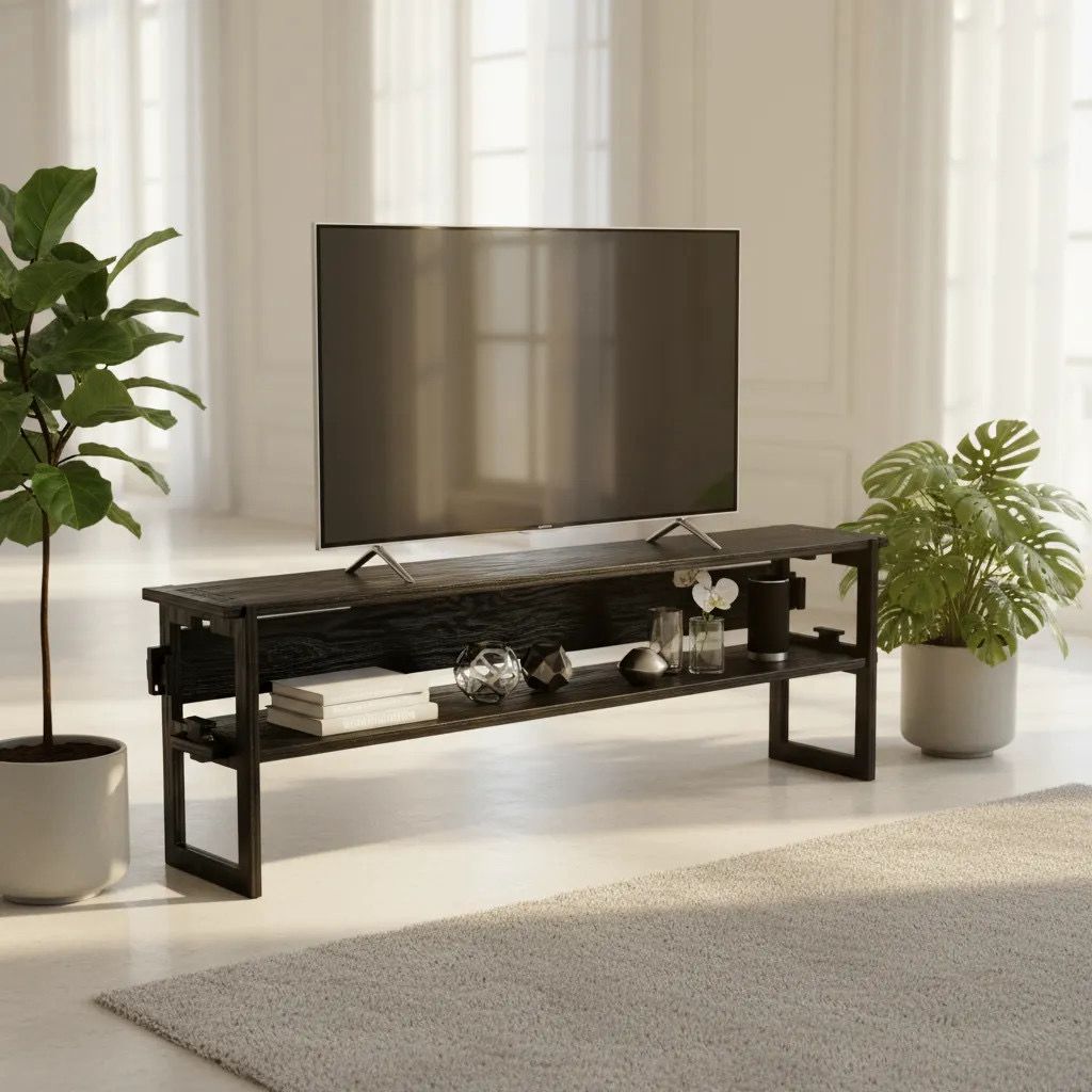 Its sturdy shelving system safely carries heavy electronic devices.